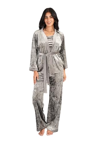 CARINA - طقم بيجامة قطيفة كلاسيك للنساء من كارينا، مكون من 3 قطع