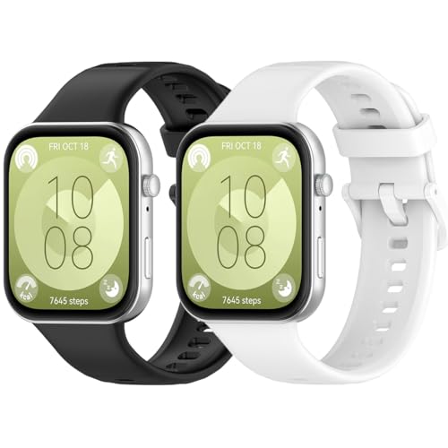 carinacoco - سوار رياضي بديل من السيليكون الناعم قابل للتعديل متوافق مع ساعة هواوي فيت 3 من قطعتين، اسود وابيض