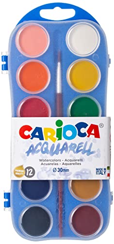 Carioca - علبة ألوان مائية بلاستيكية 12 قطعة 42400 من كاريوكا – سعة 30 ملم