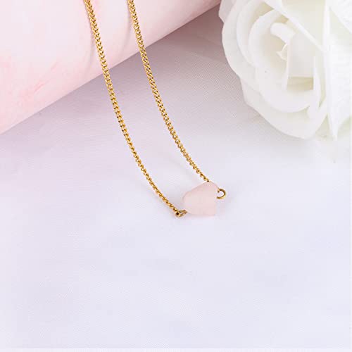 CARITATE - عقد كريستال خام من كاريتات، حجر، كوارتز وردي، للنساء