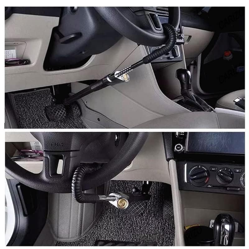 CARIZO - قفل امان مضاد للسرقة للدركسيون وفرامل اليد بخطاف مزدوج قابل للتعديل مناسب للسفر لسيارة ماروتي سوزوكي 800 موديل (CQ-6084) من كاريزو