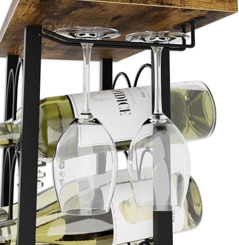 CARLA HOME - رف مشروبات من كارلا هوم مع حامل زجاجي - حامل نبيذ خشبي ومعدني لسطح الطاولة، يحمل 6 زجاجات و2 كوبين، مثالي للمنزل والمطبخ والبار او الخزانة، هدية نبيذ