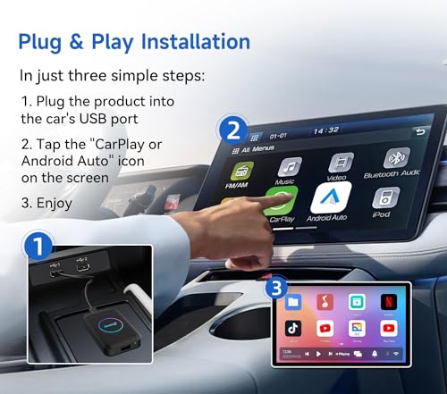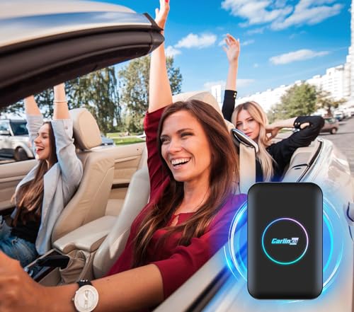Carlinkit - محول سيارة أندرويد لاسلكي ايه اي بوكس 5.0 كاربلاي ايه اي بوكس بلس، 2+32 جيجا وبنظام تحديد المواقع GPS المدمج مع بث تطبيقات الفيديو الى سيارتك ومناسب لليوتيوب والنتفليكس من كارلين نت