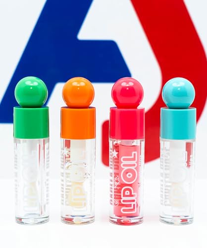 - متعددة الألوان: زيوت شفاه نابضة بالحياة في زجاجات زجاجية خضراء وبرتقالية وأحمر وتركواز، كل منها يتميز بأداة توزيع كروية فريدة من نوعها