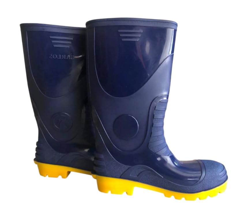 Generic - حذاء سيفتي من بلاستيك PVC من كارلوس، ازرق كحلي مع نعل اصفر، حذاء عمل كوزلوك كارلوس مقاوم للماء (46)