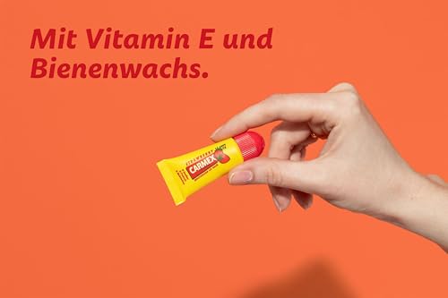 - تأثير مهدئ ووقائي - الفازلين وشمع العسل يجعل الشفاه الجافة ناعمة ومرنة. يحمي مرطب كارمكس بشكل موثوق من البرد والرياح والجفاف ويغذي الشفاه بشكل مكثف بفيتامين اي للحصول على نعومة تدوم طويلًا.