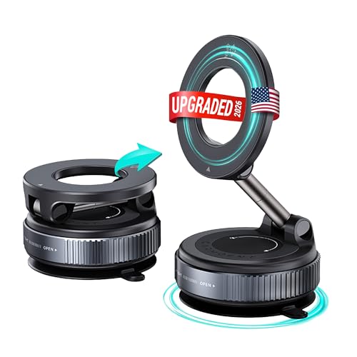 CARMOUNT - حامل مغناطيسي للسيارة من كارمونت كلاتش اكس ون - حامل قابل للتعديل 360 درجة مع كوب شفط 95 باوند، دعامة معدنية، متوافق مع ايفون 16 15 14 13 12 برو ماكس وحافظات مغناطيسية
