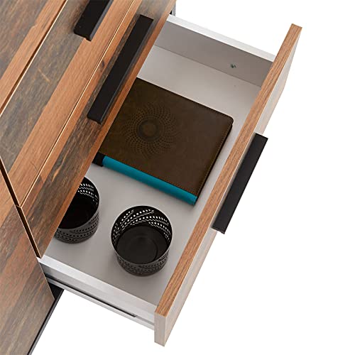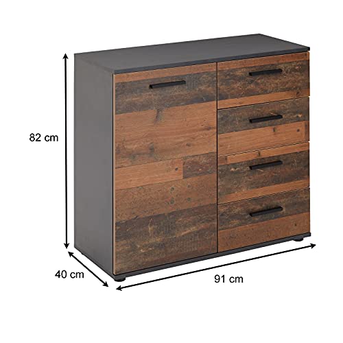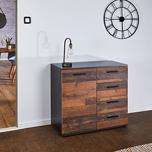 CARO-Möbel - وحدة أدراج جانبية من شيكاغو بلون غامق بتصميم قديم مع باب واحد و4 أدراج بلوح مرتفع من كارو-موبيل