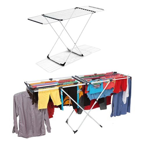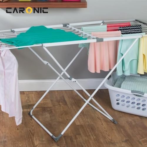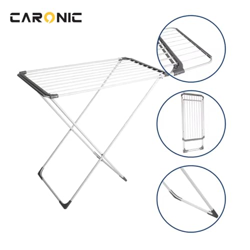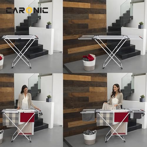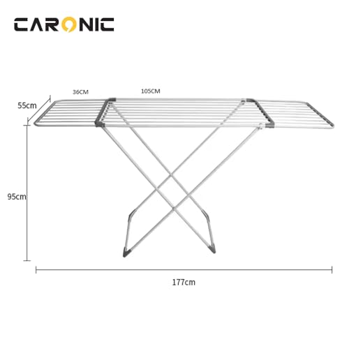CARONIC - حامل تجفيف ملابس من الفولاذ المقاوم للصدأ قابل للطي وسهل التخزين مع جزامة 1.05 إلى 1.77 م × 55 سم × 96 سم من كارونيك