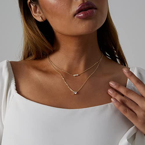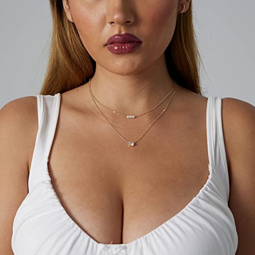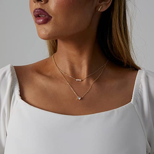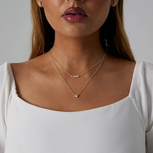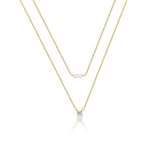 CAROVO - كاروفو عقد انيق من اللؤلؤ للنساء مطلي بالذهب عيار 14 قيراط المرصع بالماس مصنوع يدويا لؤلؤ المياه العذبة المستزرع مجوهرات يومية للهدايا
