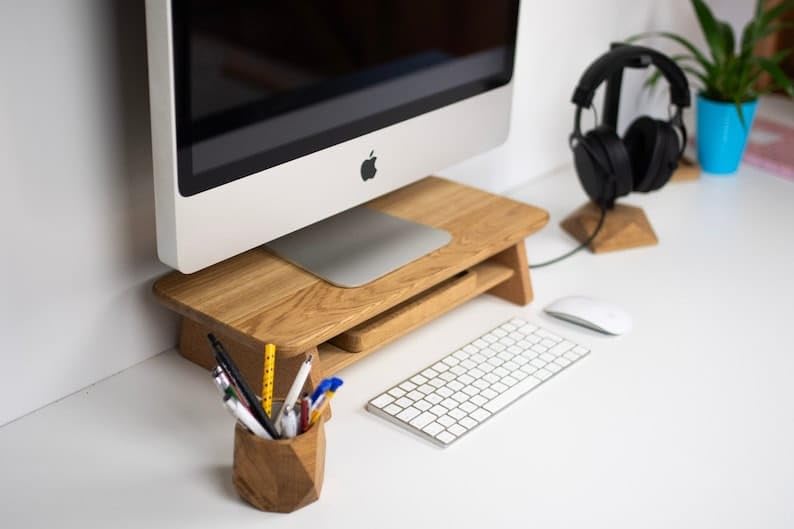 - يرفع حامل الشاشة ارتفاع مستوى الرؤية الخاص بك، لذلك لا تحتاج إلى رأس سفلي لعرض الشاشة، مما يزيد من راحة الجلوس بشكل فعال.