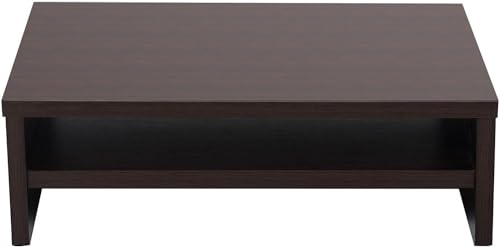 carpentray - حامل شاشة كمبيوتر طويل من الخشب من كاربنتراي، رف مكتبي لرفع الشاشة، حامل ارجل لسطح المكتب مع مكتب تخزين للوحة المفاتيح (رف مزدوج، بني داكن) من كاربنتراي