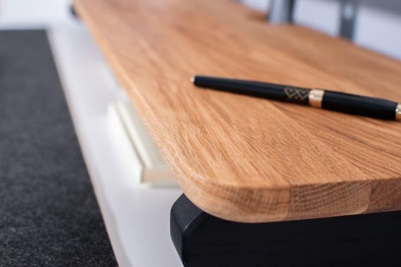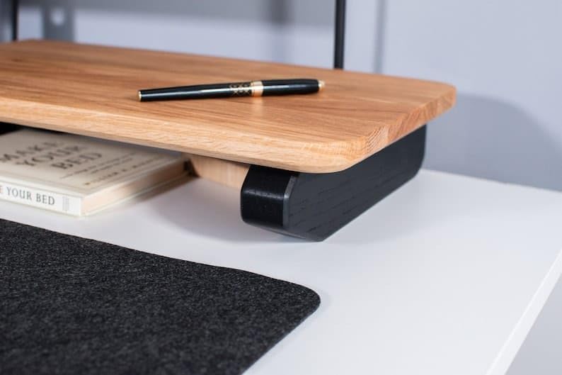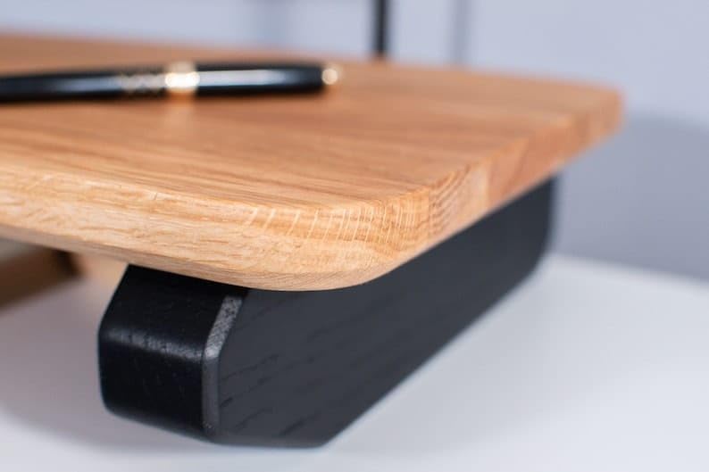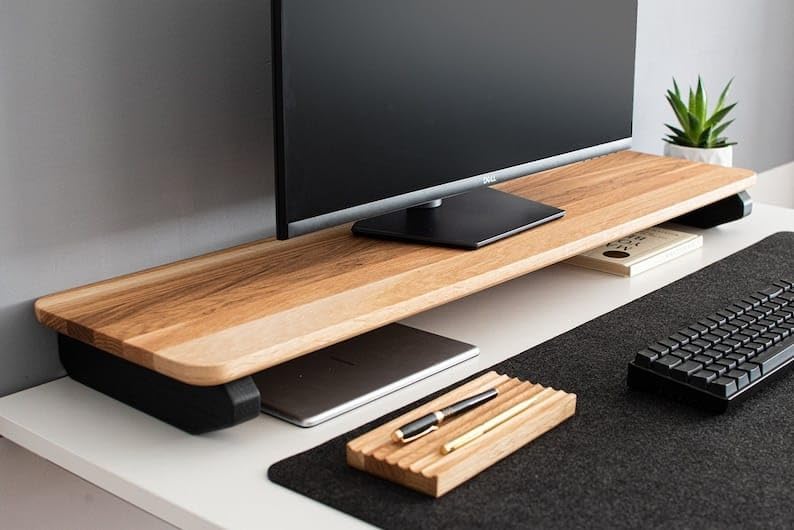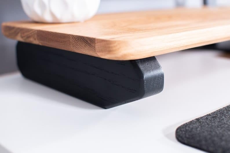 carpentray - حامل شاشة كمبيوتر طويل من الخشب من كاربن تراي، رف شاشة مكتبي، حامل ارجل لسطح المكتب، حامل لابتوب للتلفزيون مع كيبورد تخزين مكتب خشب الساج + لمسة نهائية سوداء (طول 66 سم)