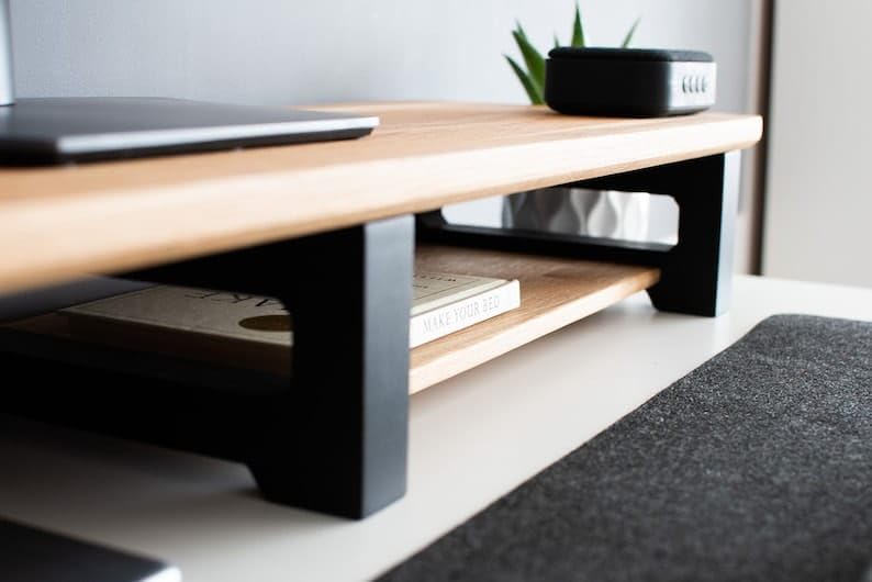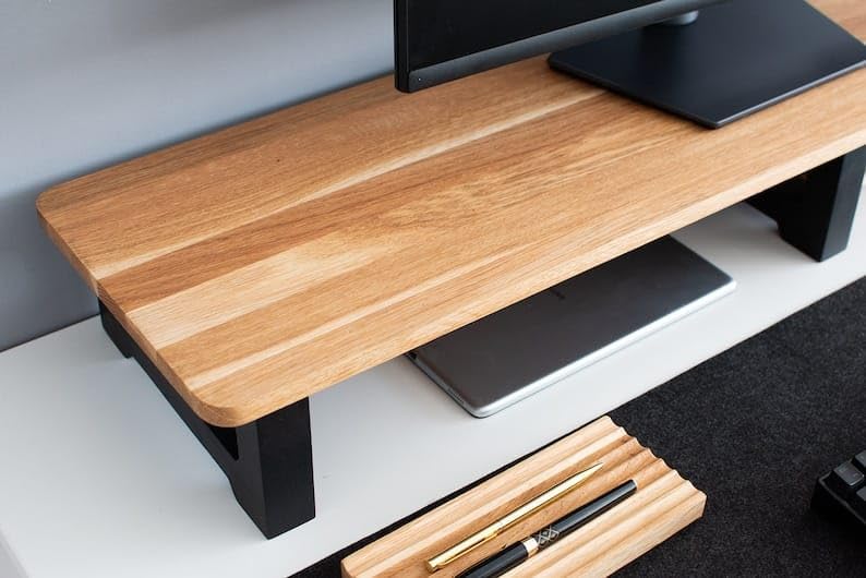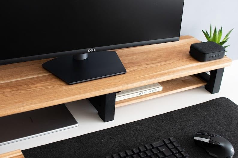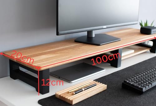 carpentray - حامل شاشة خشبي مع منظم تخزين للمكتب والطاولات والمكتب والمنزل والاستوديو وطاولة الدراسة | حامل شاشة مريح لسطح المكتب 100 × 20 × 11 سم (ارجل سوداء)