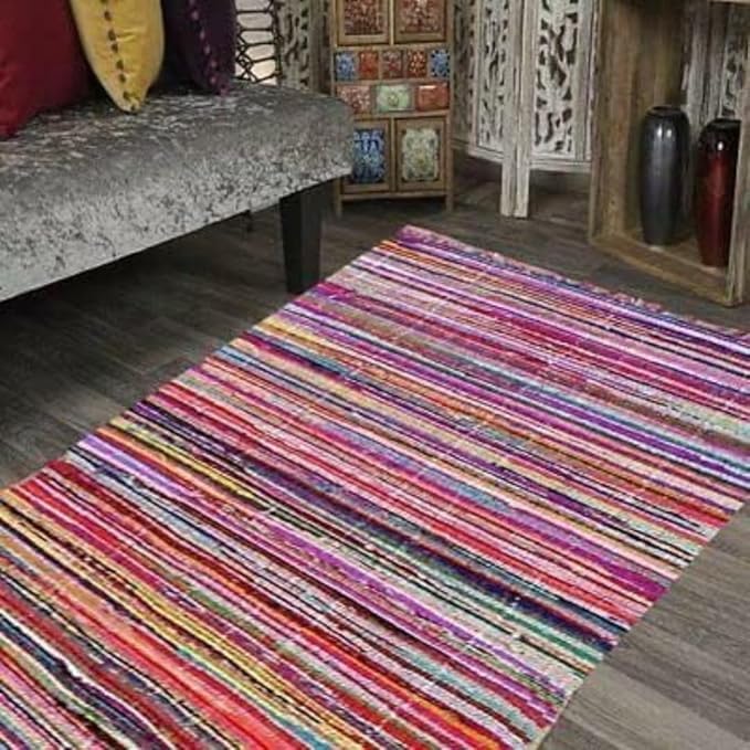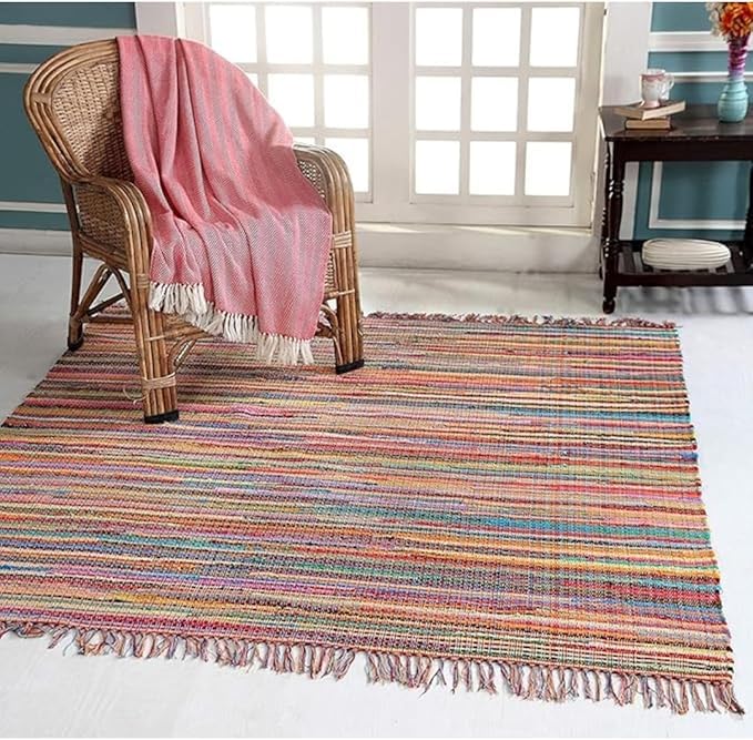 Generic - سجادة كليم صناعة يدوية متعددة الالوان، خامة قطن للمطبخ والحمام والأماكن المفتوحة مقاسات مختلفة (200*270)