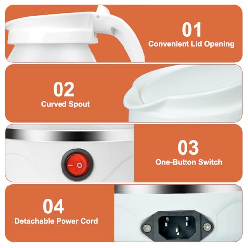 - 【تصميم مناسب للاستخدام البشري】: الغلاية القابلة للطي مجهزة بتصميم فوهة دائرية لسكب الماء دون تناثر. يتميز غطاء الغلاية بتصميم فتح وإغلاق بلمسة واحدة، ما يوفر سهولة استخدامه بيد واحدة. كما يمكن فصل سلك الطاقة عن هيكل الغلاية لتخزين أكثر ملاءمة.
