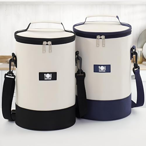 Generic - شنطة حمل مريحة - شنطة حرارية مريحة مع شكل اسطواني، بطانة من الرقائق المعدنية، تحافظ على درجة الحرارة لمدة 8 ساعات، سحاب متين، وحزام يد معزز بالاضافة الى حزام كتف قابل للتعديل لسهولة الاستخدام اليومي