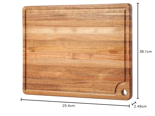 CARTADEN - لوح تقطيع خشب للمطبخ من كارتادن - لوح تقطيع كابيرسي بيتر مع تجويف عصير وفتحة مقبض للخضروات والفواكه والخبز والجبن، 38 سم × 25 سم