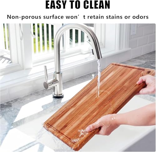 - سهل للتعامل: لقد وضعنا مقابض على جانبي لوح الخشب هذا، مما يجعل رفعه وتحريكه أمرًا سهلاً. لا مزيد من لحظات المطبخ المحرجة. لوح التقطيع الخشب للمطبخ يجعل إعداد الطعام سلسًا وفعالًا.