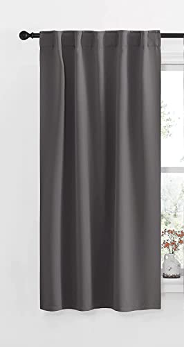 Cartela fabrics - ستائر بلاك اوت عازلة للحرارة بشريط لاصق للتثبيت من كارتيلا لغرفة المعيشة وغرفة النوم قطعة واحدة بلون رمادي 132 سم عرض × 160 ارتفاع البوليستر سادة