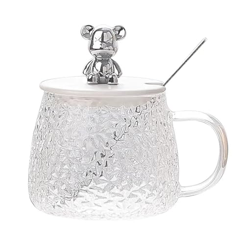 Spaceshoop - كوب مغطى مع ملعقة من سبيس شوب، مصنوع من الزجاج، سعة 350 مليلتر، شفاف، مقاوم للحرارة العالية مع غطاء وملعقة
