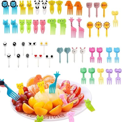 Generic - عيدان طعام على شكل حيوانات كرتونية للأطفال - شوك صغيرة قابلة لإعادة الاستخدام لتزيين الوجبات
