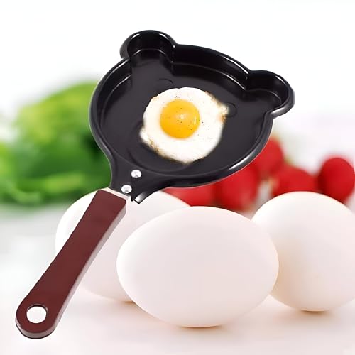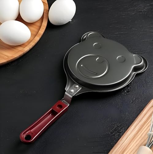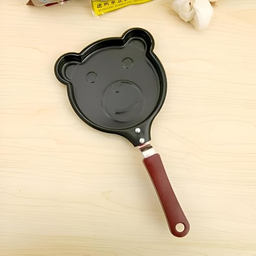 Generic - مقلاة على شكل دب كرتوني - مقلاة اومليت لطيفة غير لاصقة مصنوعة من الستانلس ستيل الاسود المتين لضمان تحرير سلس مثالية للافطار المرح وتشكيل البيض الابداعي للاطفال (قطعة واحدة)