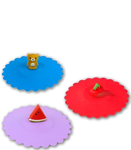 Generic - غطاء كرتوني - غطاء اكواب سيليكون مبتكر باشكال ملونة ممتعة، مانع للانسكاب امن للحفاظ على المشروبات ساخنة او باردة، مثالي للمطبخ والمكتب والنزهات والاستخدام اليومي القابل لاعادة الاستخدام (قطعة 3)