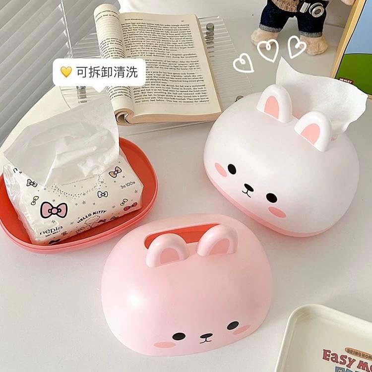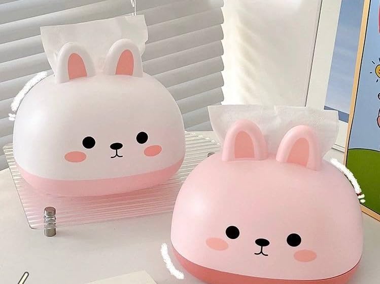 • تصميم كرتوني لطيف: صندوق مناديل على شكل أرنب كرتوني جذاب بوجه مبتسم وأذنين بارزتين يضيف لمسة جمالية مرحة لأي غرفة