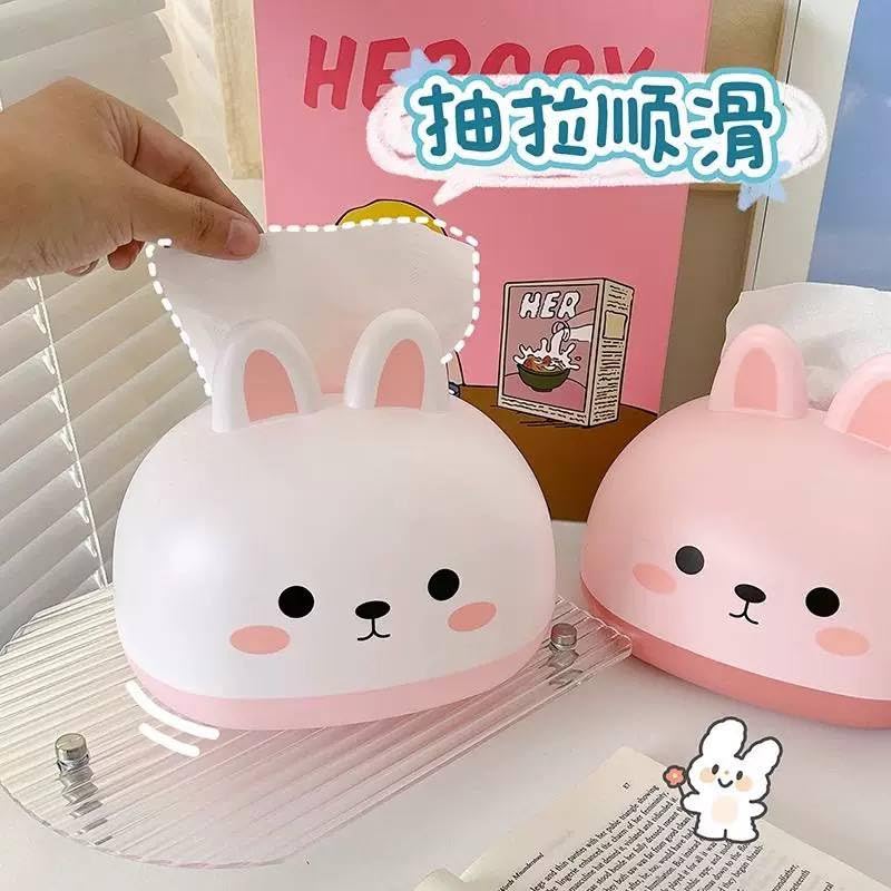 Generic - صندوق مناديل على شكل أرنب كرتوني، حامل مناديل ورقية لطيف، متوفر باللون الأبيض والوردي