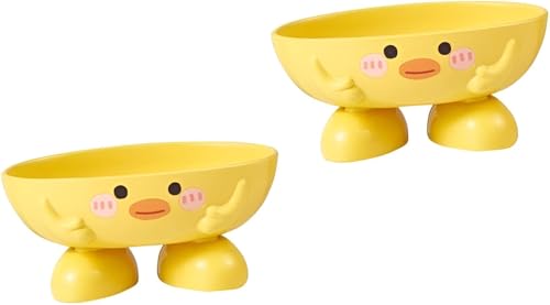 Generic - صبانة بتصميم كرتوني - طابع بطة صفراء صغيرة رائعة، هيكل بلاستيك سميك مع تصريف فعال، يعزز تنظيم حمامك (قطعتان)