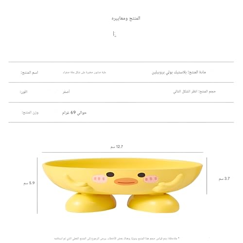 - صندوق صابون صغير بشكل بطة صفراء مصنوع من مواد عالية الجودة وصديقة للبيئة تضمن المتانة وعمر الخدمة الطويل. تصميم قوي يجعله مقاومًا للكسر مما يسمح بالاستخدام المتكرر بمرور الوقت دون التنازل عن الجودة، مما يجعله خيارًا مثاليًا للمستهلكين المهتمين بالبيئة.