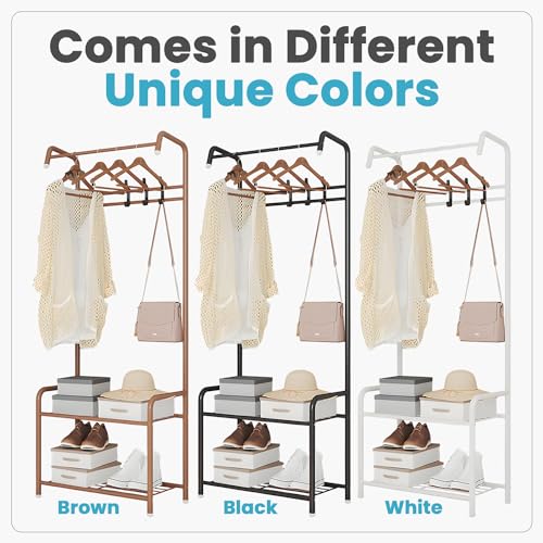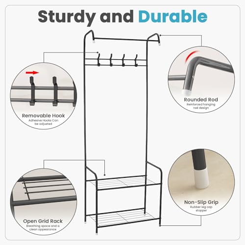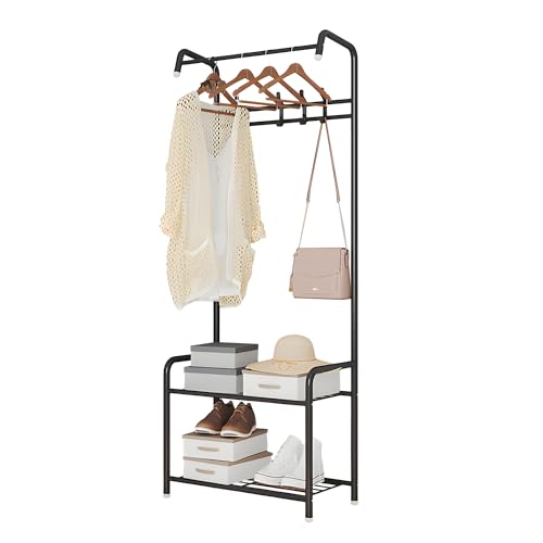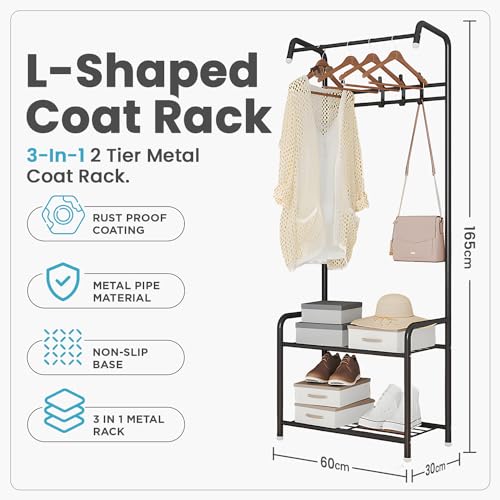 CART ROLL - حامل معاطف معدني حديث 3 في 1 بطبقتين مع شماعات، حامل معدني بقاعدة رخامية، منظم متين للملابس/ الأحذية/الشنط، لغرفة النوم والشرفة والممر وغرفة المعيشة من كارترول، (أسود)