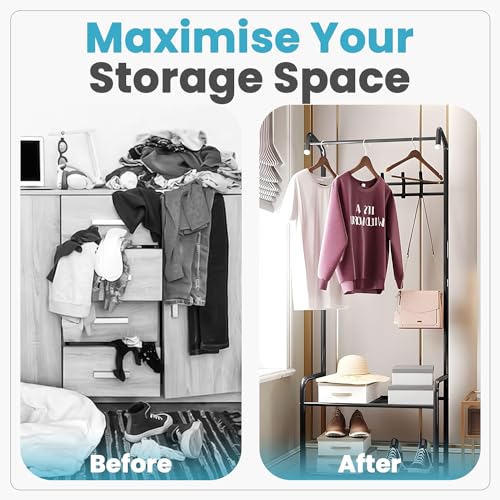 - 🥻 سهل التركيب: يناسب حامل الملابس كل مساحة بسبب تصميمه الأنيق البسيط. مثالي لغرفة بدون دولاب للملابس. دليل التعليمات الموضح والملحقات البسيطة تجعل من السهل عليك تجميعه في بضع دقائق (استخدام اللغة العربية غير مؤكد). حامل الملابس سهل وبسيط التركيب دون أي مساعدة، فهو قوي ومصمم لحمل ملابسك وأحذيتك وشنطك وسجادك وكاباتك وغيرها من الأشياء بثبات.