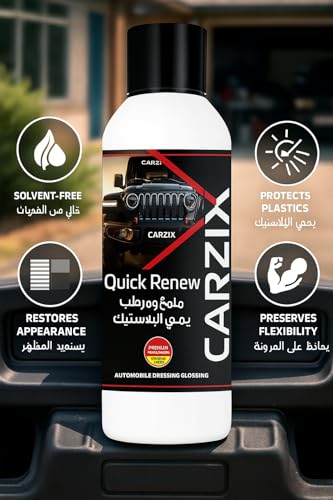 CARZIX - كارزيكس كويك رينيو (ملمع ومرطب المطاط والبلاستيك) - مرمم وواقي من البلاستيك والمطاط - تركيبة ثلاثية المفعول خالية من المذيبات، تنعش الحواف الداخلية والخارجية، مصدات، اطارات - تقنية المانية