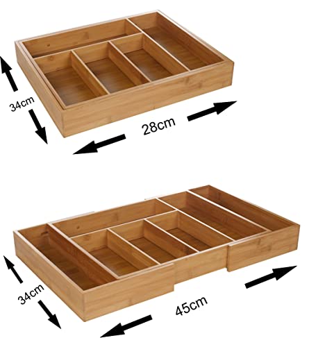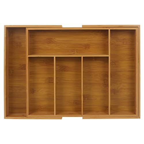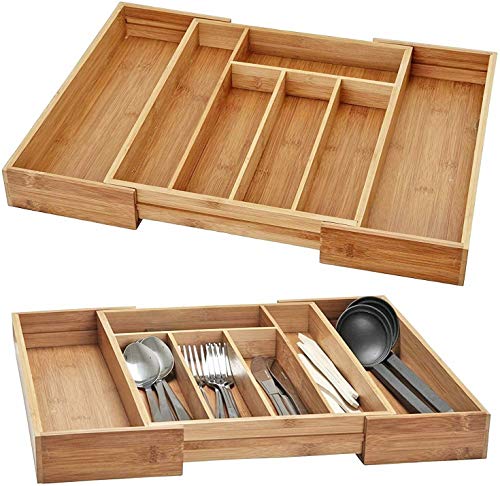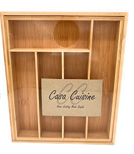 Casa Cuisine - صينية ادوات مائدة خشبية قابلة للتوسيع من الخيزران من كاسا كويزين مع 5 الى 7 مساحات تخزين قابلة للتعديل