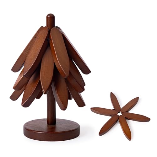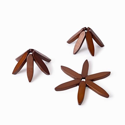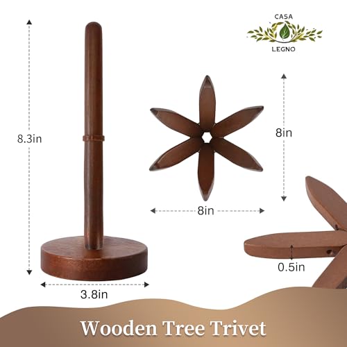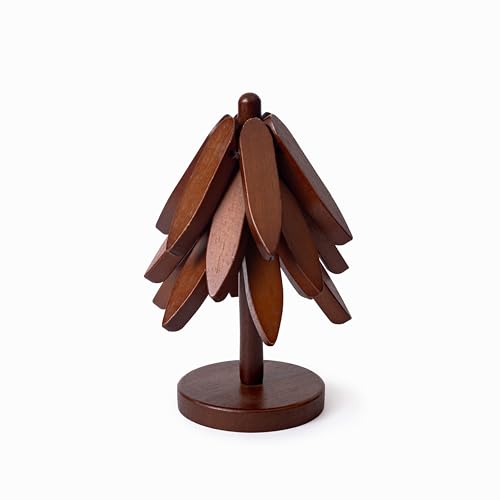 Casa/Legno - مجموعة شجرة الركيزة من كاسا/ليجنو - قواعد اكواب وابريق شاي مقاومة للحرارة، خشبية، مزخرفة (3 قطع - بني داكن)