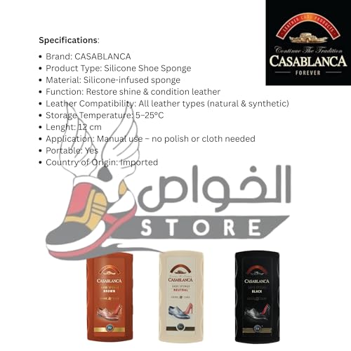 CASABLANCA FOREVER - إسفنجة أحذية من السيليكون من كازابلانكا، لمعان وتجديد فوري للجلد – مناسبة لجميع أنواع الأحذية الجلدية – محمولة وسهلة الاستخدام – لمسة نهائية لامعة تدوم طويلا، لون أسود، 12 سم تباع من: متجر الخواص