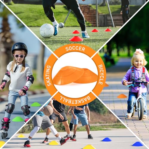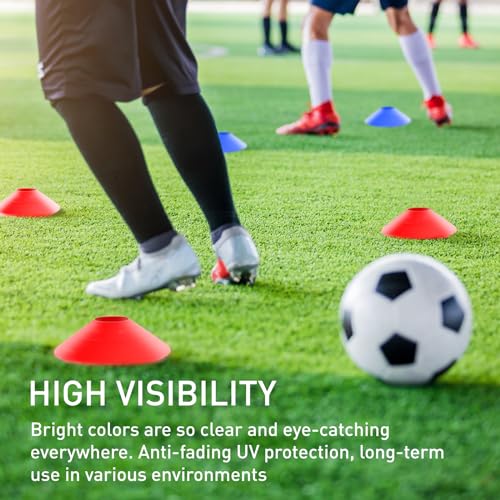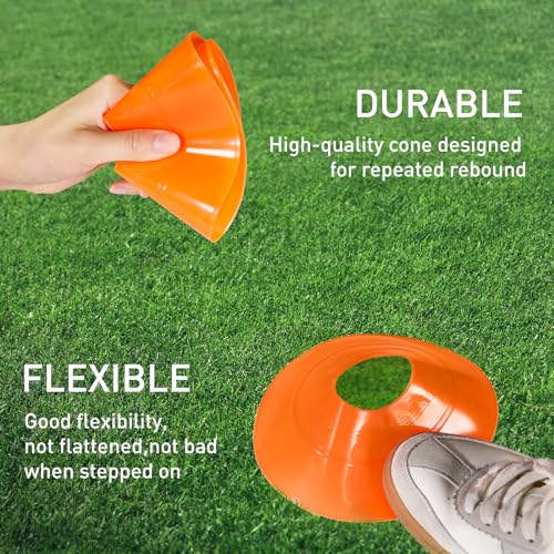 - 【ألوان زاهية】 ألوان زاهية بما في ذلك الأحمر والأزرق والبرتقالي والأصفر والأخضر، 10 قطع لكل لون، كافية ومتنوعة لتلبية احتياجاتك المتنوعة. اللون الزاهي يجعل مخاريط تدريب كرة القدم هذه أكثر عرضة لجذب الانتباه ويمكن استخدامها كعلامات واضحة في الملعب.