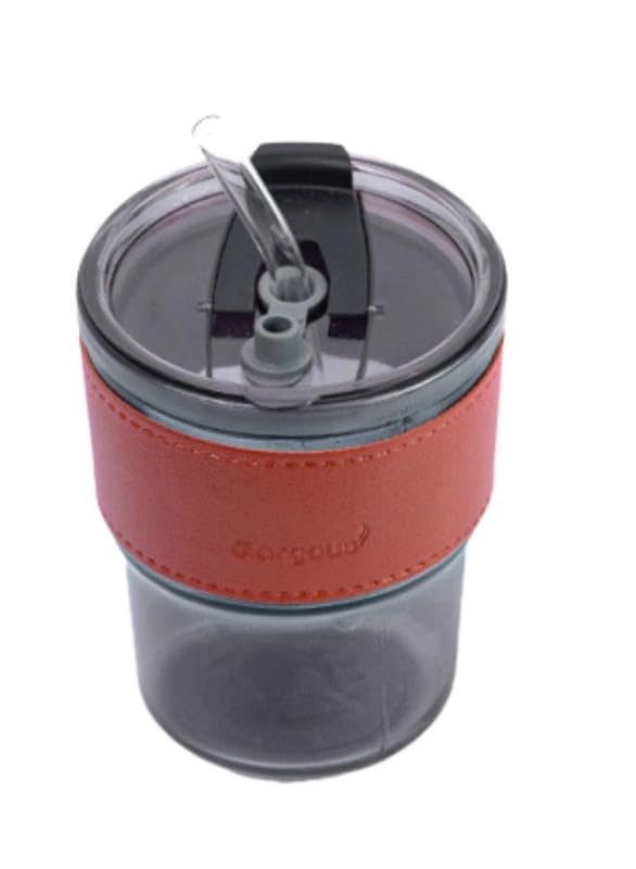Generic - كاسا هوم -كوب زجاجي مع شفاطة ، غطاء مقاوم للانسكاب ، حافظة من جلد البولي يوريثين، زجاج رمادي دخاني مع شريط تيراكوتا - كوب قابل لاعادة الاستخدام للقهوة والشاي والماء والسموزي