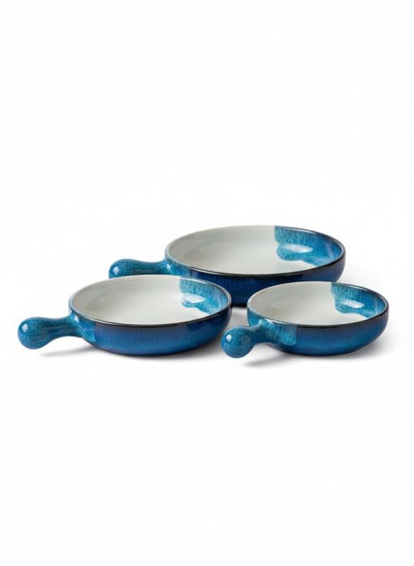 - طلاء أزرق اوشن جميل. تتميز كل مقلاة بطبقة زجاجية تفاعلية فريدة من نوعها بألوان المحيط الغنية، مما يمنح كل قطعة مظهرًا فنيًا مصنوعًا يدويًا.