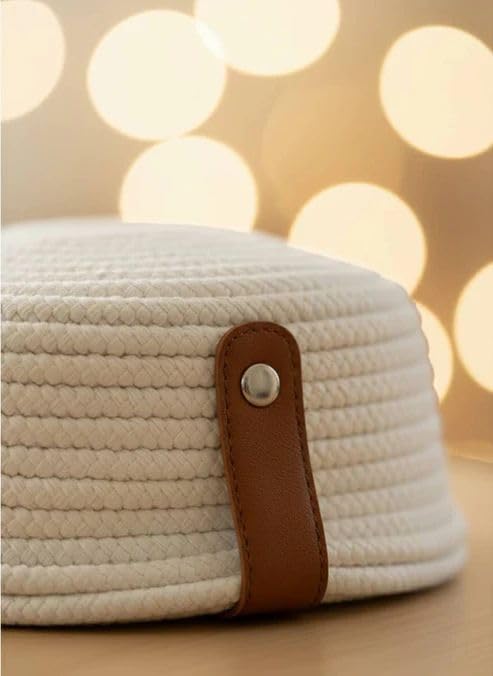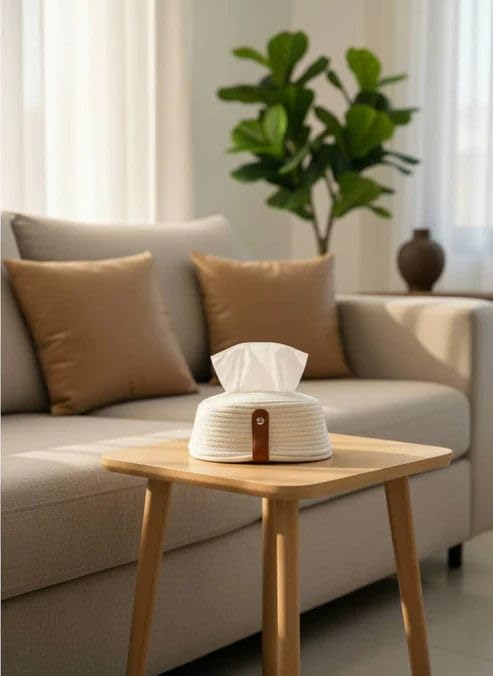 Generic - غطاء علبة مناديل مصنوع من حبل منسوج من كاسا هوم، حامل مناديل من القطن مع عروة جلدية، نمط اسكندنافي بسيط، لون عاجي كريمي