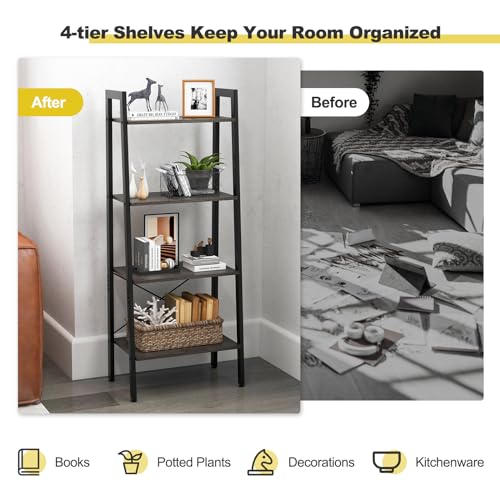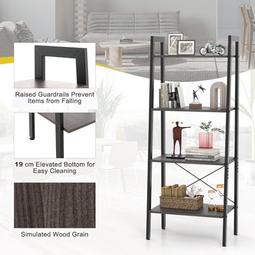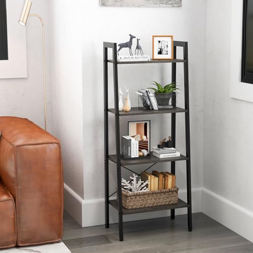 CASART - رف كتب بسلم صناعي 4 - 6 طبقات من كاسارت تخزين بإطار معدني قائم بذاته أرفف منظمة خشبية لغرفة المعيشة وغرفة النوم والمكتب رمادي داكن طبقات: 56 × 32 138 سم خشب مُصنع