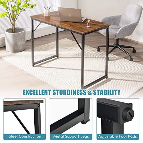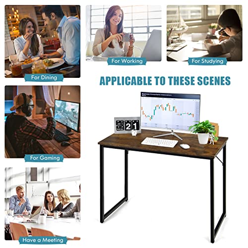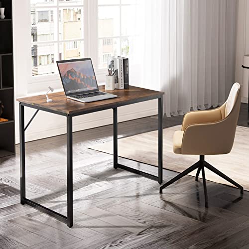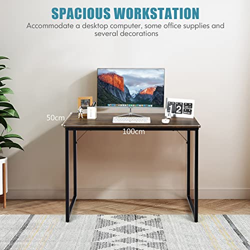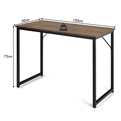 CASART - مكتب كمبيوتر من كاسارت ترابيزة كتابة خشبية لاب توب مع قواعد أرجل قابلة للتعديل محطة عمل للدراسة بإطار معدني منزلي صغير بسيط 100 × 50 سم بني ريفي