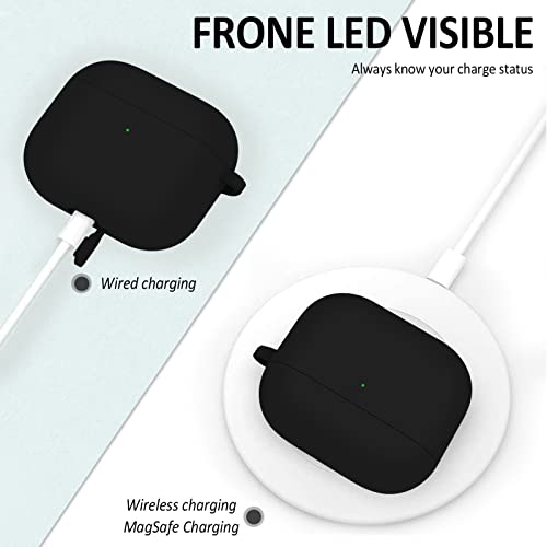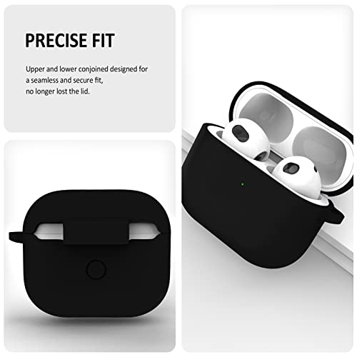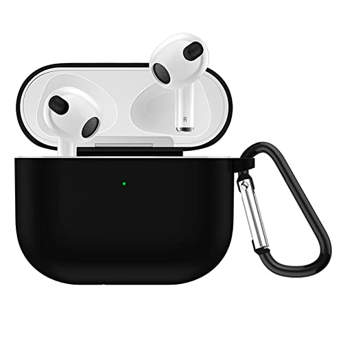 HATALKIN - جراب متوافق مع ايربودز 3 اصدار 2021 الجيل الثالث جراب حافظة للنساء والرجال من السيليكون الممتاز، حماية كاملة لايربودز الجيل الثالث مع سلسلة مفاتيح، اسود