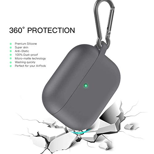 Generic - حافظة متوافقة مع سماعات ايربودز برو، حافظة شحن واقية من السيليكون مع سلسلة مفاتيح، متينة وخفيفة الوزن، شحن لاسلكي، رمادي