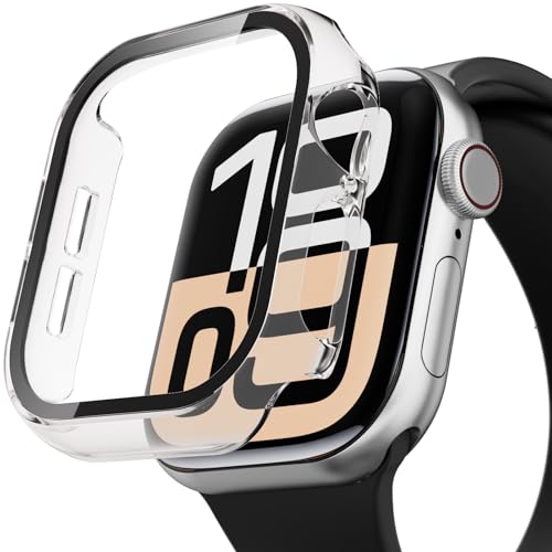 HAJSLU - شاشة حماية من الزجاج المقوى لساعة آبل سلسلة 10 مقاس 44 ملم، بممتص صدمات من البولي كربونات ولون سادة مطفي (شفاف، 40 ملم)