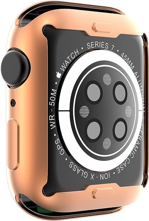 Generic - جراب حماية متوافقه مع ساعة ابل سمارت سيريس 7 مقاس 45 بتصميم انيق ومتين وناعم من البولي يوريثين المرن والمقاوم للحرارة للرجال والنساء روز جولد بولي اللدن بالحرارة