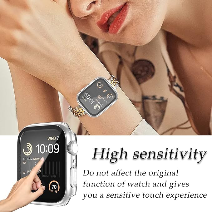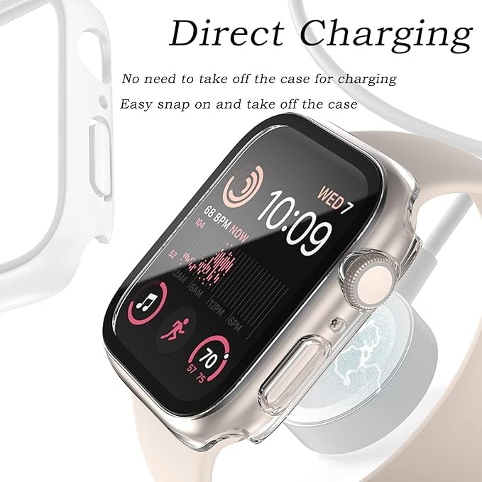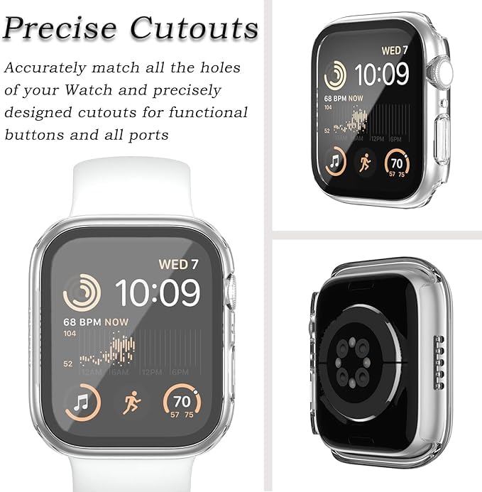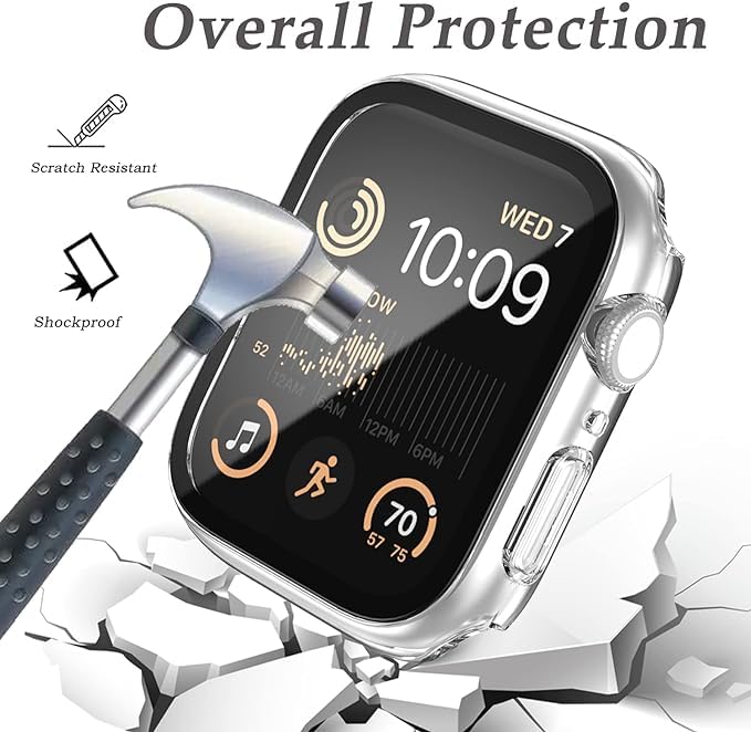 ELMO3EZZ - جراب من المعز متوافق مع ساعة ابل السلسلة 7 8 9 بحجم 41 ملم/ 45 ملم من البولي كربونات ممتص للصدمات مع شاشة حماية من الزجاج المقوى، جراب مطفي بلون سادة (شفاف، 45 ملم)، بولي كربونات زجاج مُقسٌى