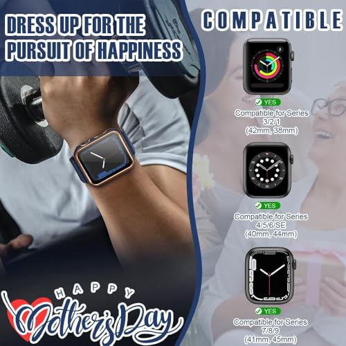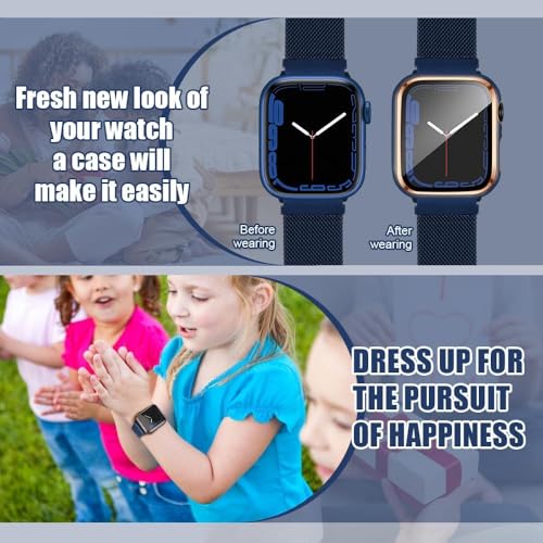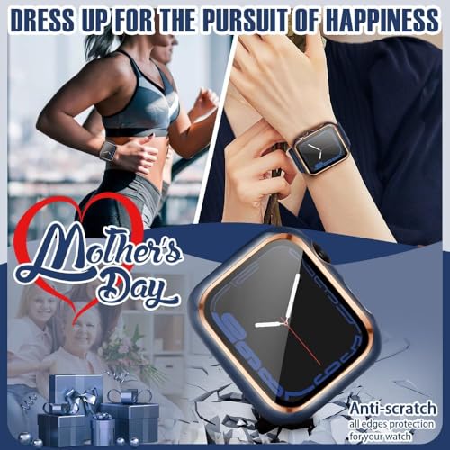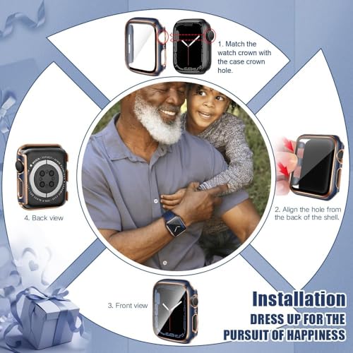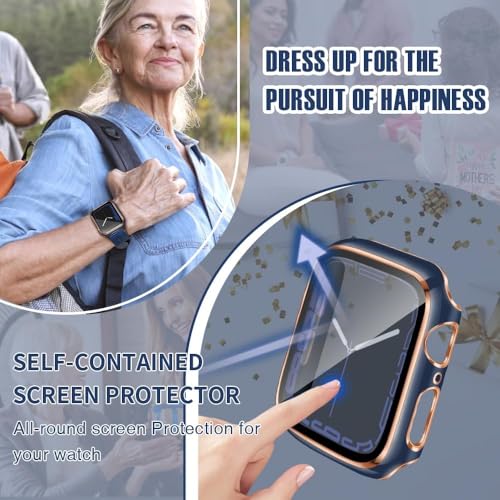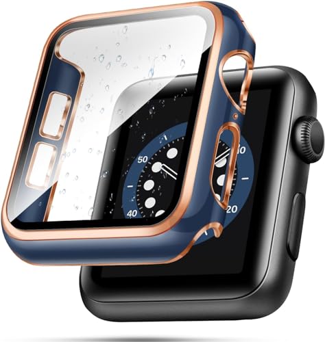 Generic - هيكل حماية متوافق مع ساعة آبل مع شاشة حماية مدمجة من الزجاج المقوى، هيكل من البولي كربونات لسلسلة اي ووتش 9/8/7/ اس اي الجيل الثاني اس اي 6/5/4/3/2 (أزرق + ذهبي، 38 ملم - سلسلة 2/3)